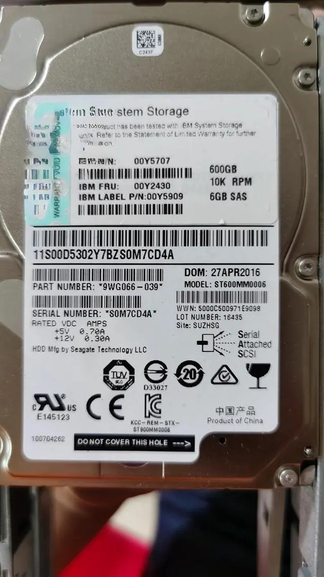 For 00Y2430 00Y2503 00Y5707 600G SAS 10K 6G V35 3700 storage HDD