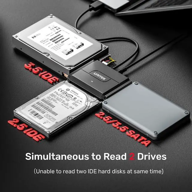 Universal IDE Hard Drive AdapterDual-Head IDE Connector (40pin and 44pin) plus one SATA II Connector. Support SATA 2.5"/3.5" HDD up to 10 TB, IDE 2.5"/3.5" HDD, DVD-ROM, CD-ROM, CD-RW, DVD-RW, DVD + RW Optical Drive. Allowing you to connect and operate TWO drives (SATA and one IDE) simultaneously. NOTE: Can not read the two IDE at same time.