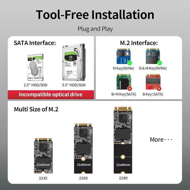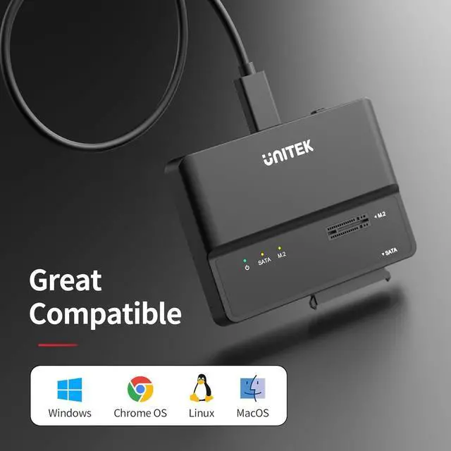 Unitek M.2 NVME SATA SSD Enclosure-2 in 1 Tool-Free Portable 10Gbps NVMe PCI-E M.2 and SATA SSD External Adapter USB 3.2 Hard Drive Reader for 2230/2242/2260/2280 NVMe and 2.5" /3.5" SSD