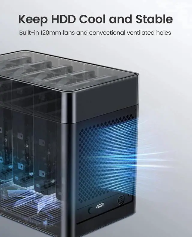 Cooling and Heat Dissipation:The ORICO 3.5-inch HDD enclosure is equipped with a 60mm double-ball bearing fan, which can to some extent cool and heat dissipating for the hard drive that heats up due to high-speed operation.