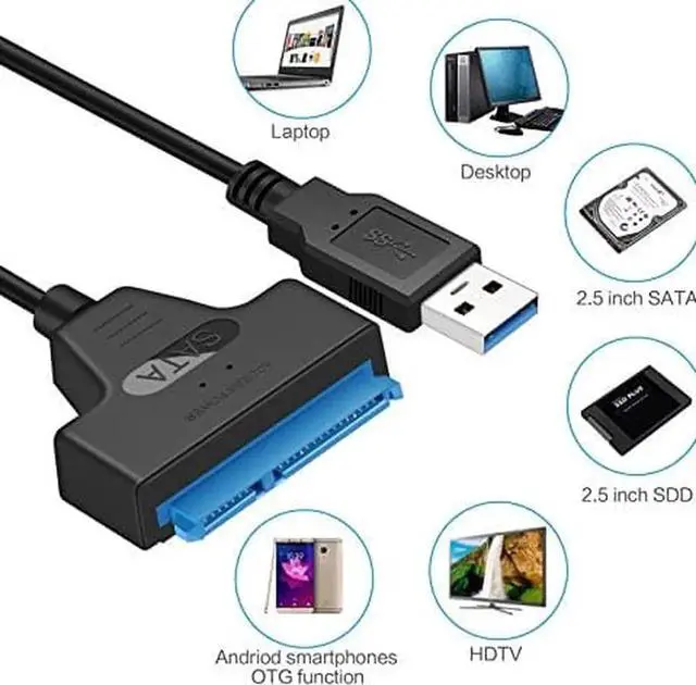 SATA Adapter Cable: This cable allows you to connect a 2.5 -inch SATA hard disk drive or solid-state drive to your computer through an available USB port. This is the easiest way to upgrade the hard drive in your laptop by adding an external hard drive / SSD via USB 3.0.