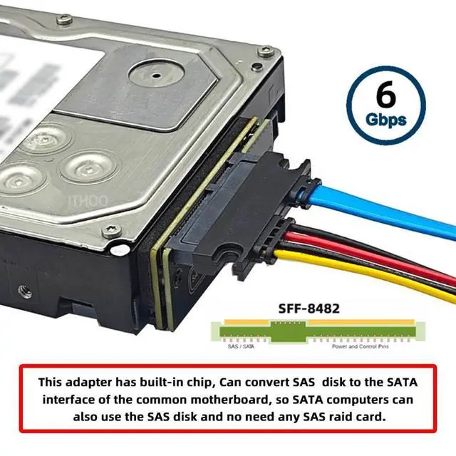 2) This adapter has built-in chip, Can convert SAS disk to the SATA interface of the common motherboard, so SATA computers can also use the SAS disk and no need any SAS raid card.