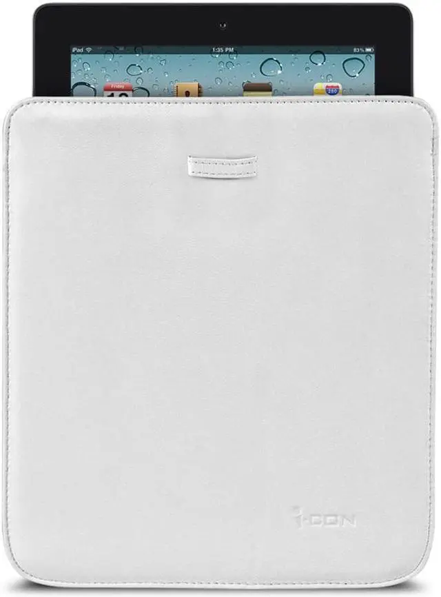 The ICON Apple iPad Sheep Skin Leather Sleeve is the stylish, lightweight choice for protecting your iPad from fingerprints, scratches, and damages. A soft, form-fitting white exterior and a felt-lined interior combine for iPod protection that doesn't add bulk. While the imatation sheep skin leather exterior protects against fingerprints and other unsightly damage, the felt lining inside the sleeve protects from dust and accidental bumps. The ICON iPad Sheep Skin Leather Sleeve is compact enough to put into another bag and features a strap closure, so your iPad stays protected and ready to go with you. The white Sheep Skin Leather Sleeve is the perfect way to protect your iPad in style so it can keep up with your fast-paced lifestyle.