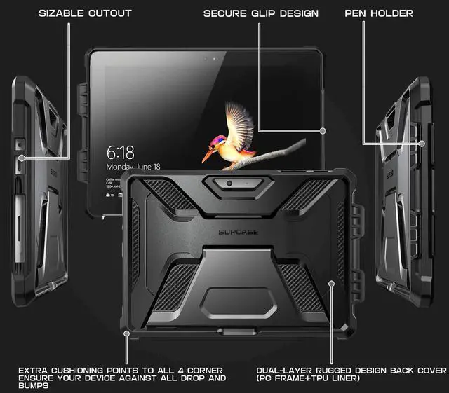 All features accessible with case installed Compatible with Surface Go Keyboard.