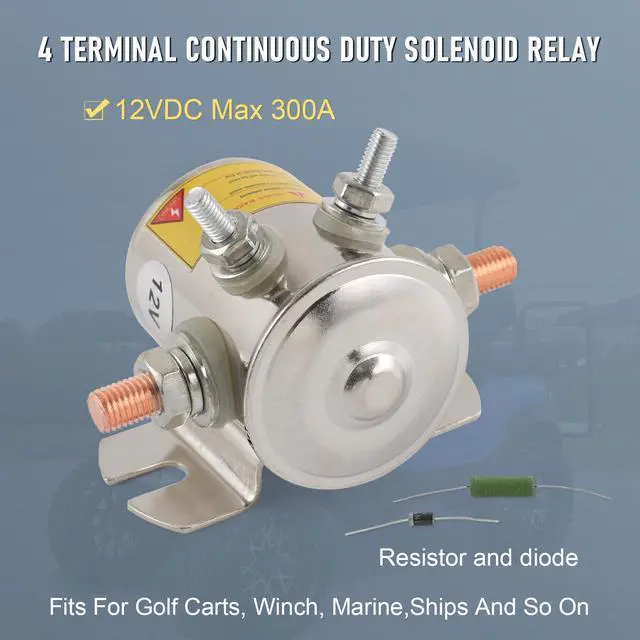 12V 4 Terminal Max 300A Solenoid W/ Resistor&diode