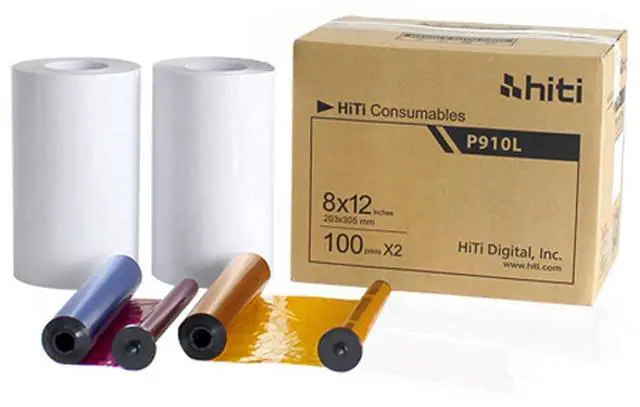 Dye sub consumables can create 16.7 m true colors. No smudging and blotching in the course of printing. HiTi P910L print kit, 8x12" at 200 total prints, 2 rolls in a box.