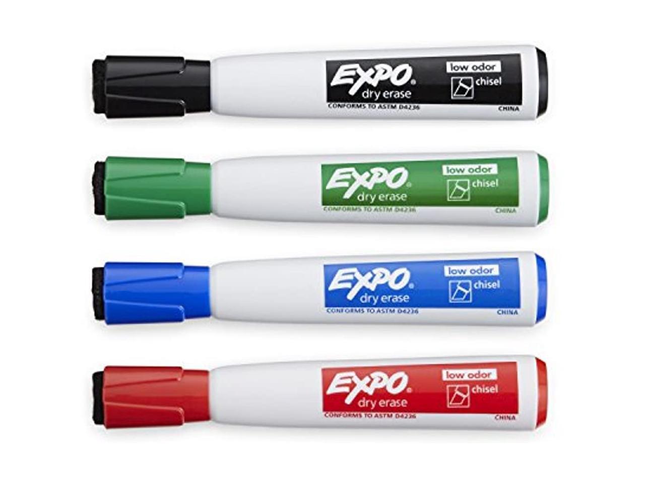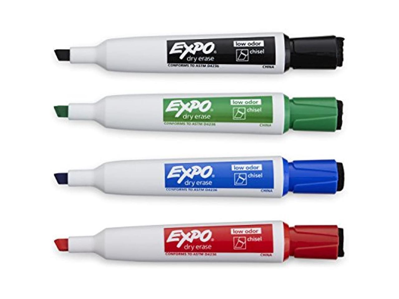 EXPO 1944728 Magnetic Dry Erase Marker, Chisel Tip, Assorted, 4/Pack