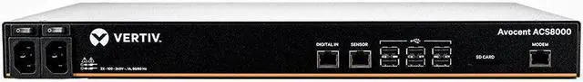 The Vertiv™ Avocent® ACS 8000 Advanced Console Server system integrates connectivity features for secure in-band and out-of-band network remote management of IT assets from anywhere in the world. Includes dual AC power supply and analog modem. The system offers scalability and reduces operational costs for a range of applications from insurance and financial institutions, to education, government, healthcare, oil and gas, the military, retail/wholesale and more.