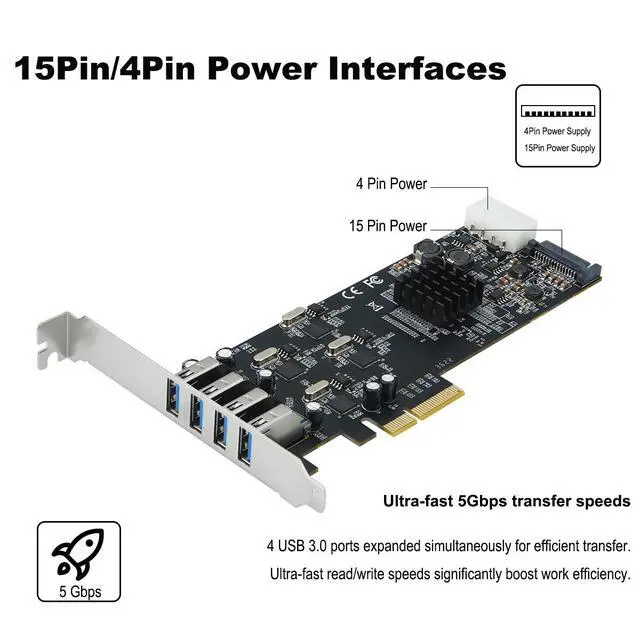 • 4 Port USB3.2 Gen 2x2 20Gbps PCIe 3.0 X4 Expansion Card Industrial Camera Capture Card Independent 5g G Speed for Each Port