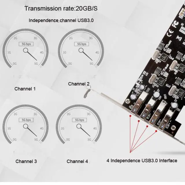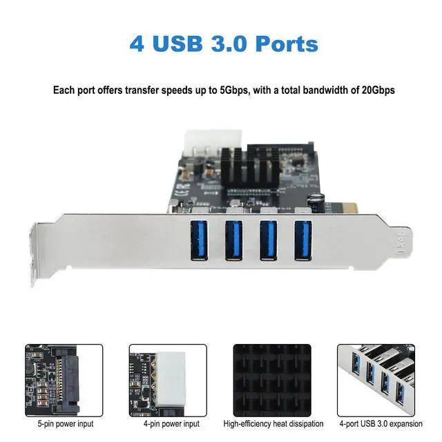 • Stable Expansion Card with 4-Port USB 3.0 PCIe Interface for Desktop Computers and Industrial Devices
