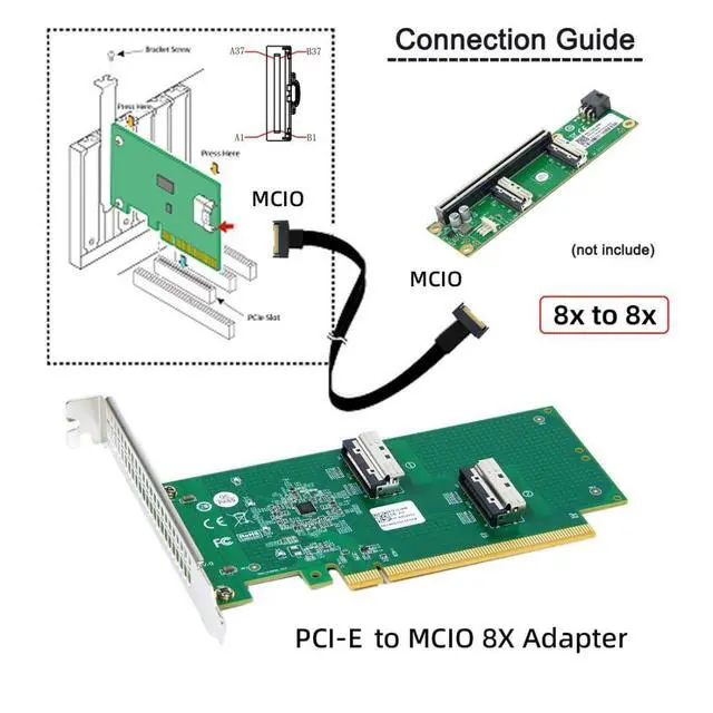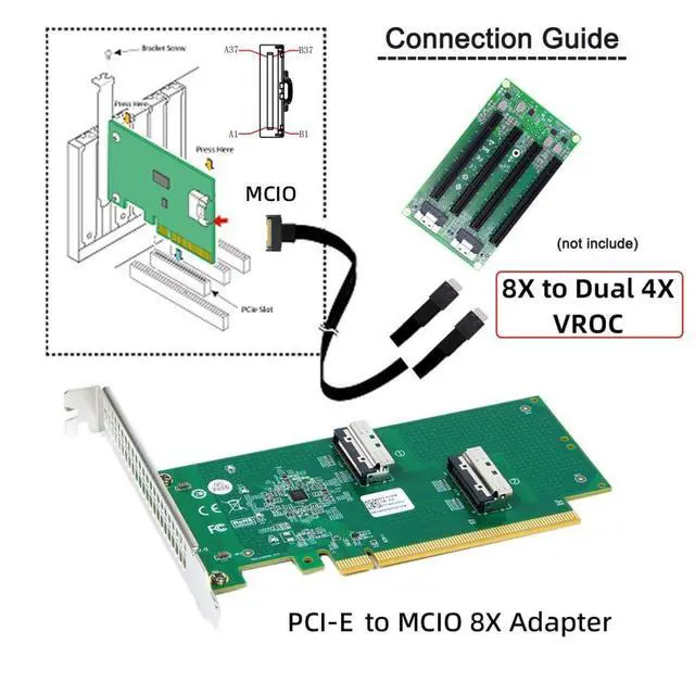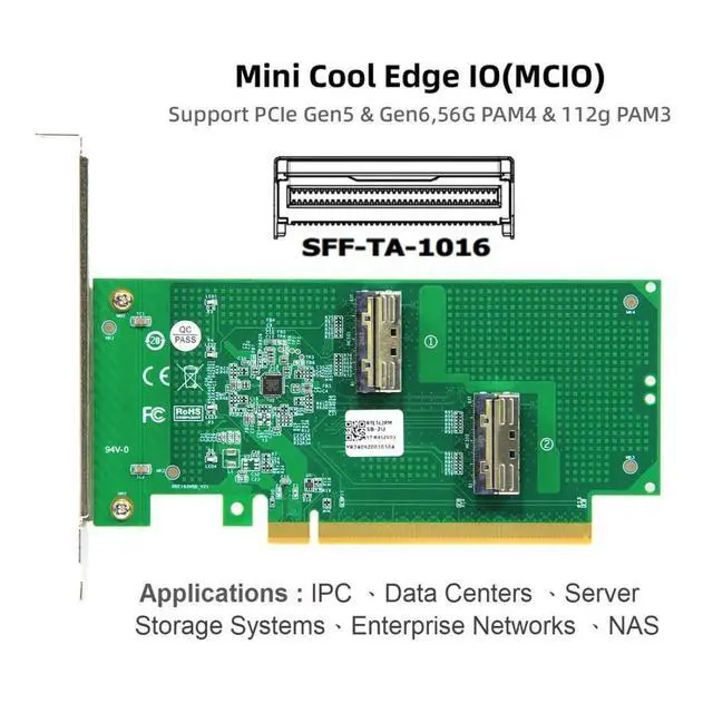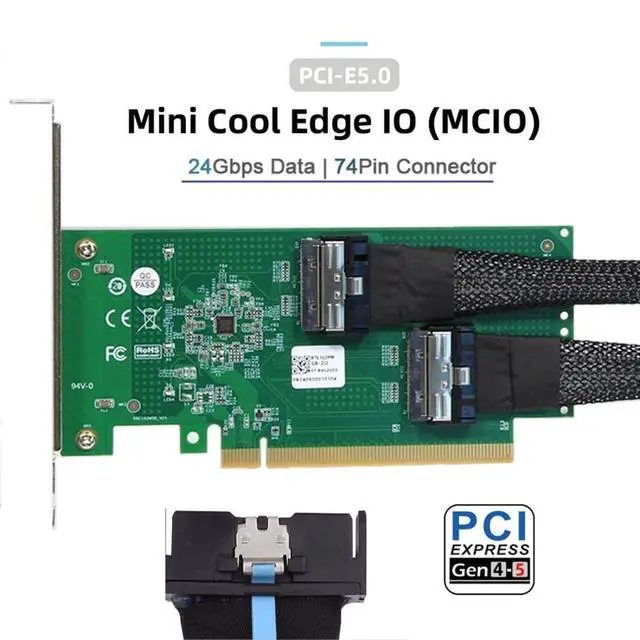 Vszerda 2 Port PCI-E X16 to PCI-E 5.0 MCIO 8i 74Pin SFF-TA-1016 Adapter Mini Cool Edge IO Female PCI Expansion Card Adapter