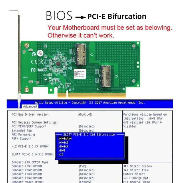 1) Only supports motherboards with detachable PCI-E channels. Control the operation of two disks based on the motherboard PCIE channel, The motherboard without PCIE signal split can only recognize one disk.
