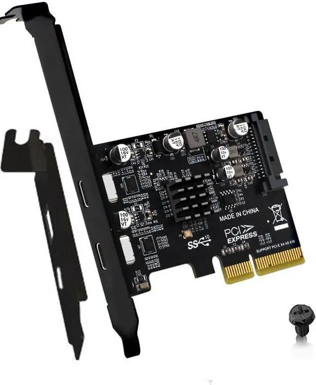 Two devices running at the same time :It complies with the PCI Express system specification, which allows your chassis to be expanded into two USB3.1 USB-C ports at the same time, supporting two devices running at the same time, with a transfer speed of up to 10Gbps.
