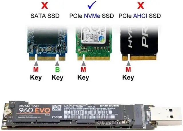2. Not work for B-key or B/M-key SATA SSD.