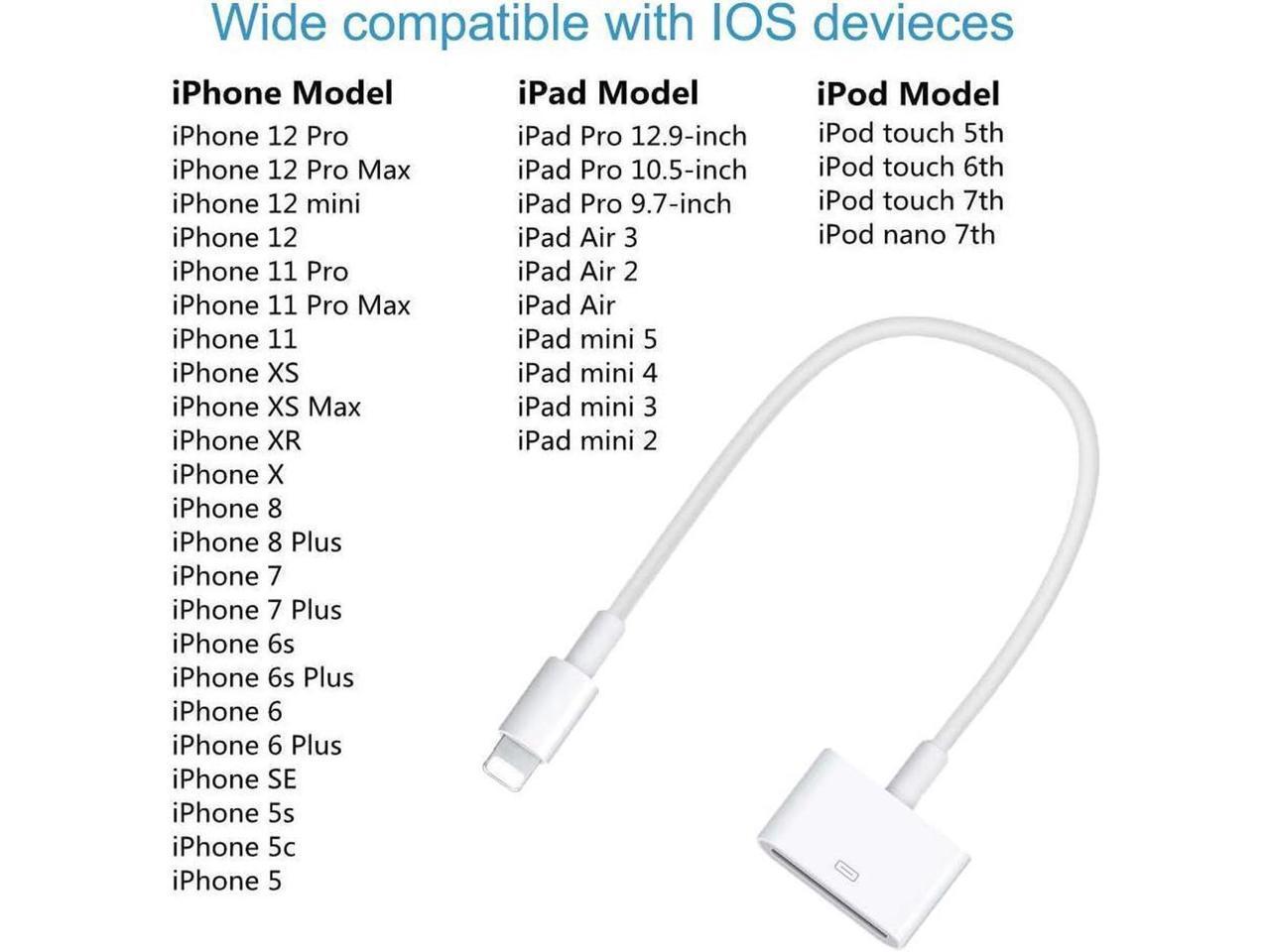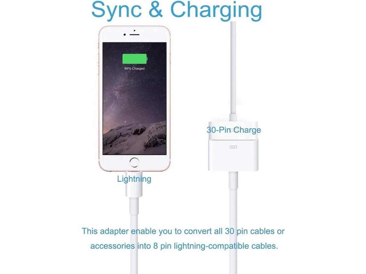 - Lightning to 30-Pin Adapter MFi Certified 8-Pin Male to 30-Pin Female Converter Charging Data Sync Cable Connector Compatible iPhone 12/11/X/8/7/6/5/iPad/iPod White (No Audio)
