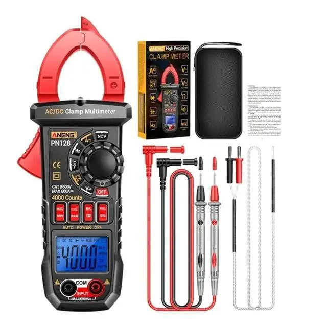 Digital Clamp Meter 600A Current TrueRMS Ammeter Auto Ranges Digital Multimeter (Red)