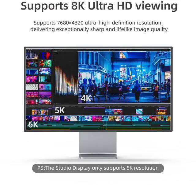 This DisplayPort to USB-C cable supports video output of Apple Studio Display 5K@60Hz and is backward compatible with resolutions like 4K@60Hz
