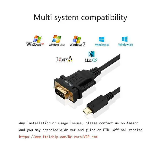- USB 2.0 to RS-232 male adapter cable - Installed as a standard Windows COM port, Full RS-232 modem control signals, RS-232 data signals;DCD,RXD,TXD,DTR,GND,DSR,RTS,CTS,RI.