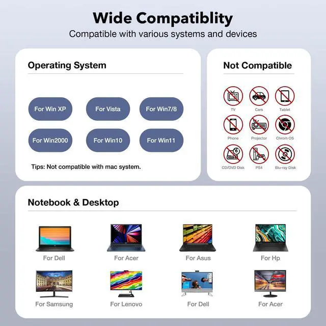 | Compatible Operating System | Not compatible with mac, only compatible with Windows 11/10/10 pro/8/7/Vista/XP/2000. |