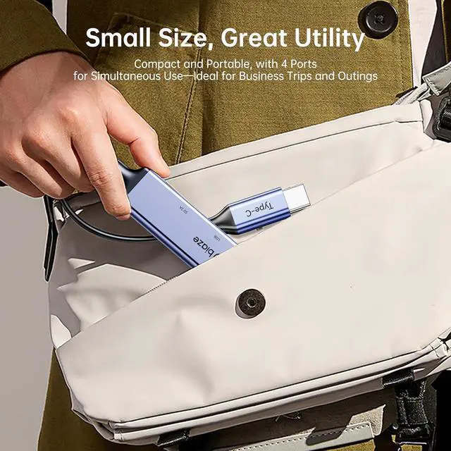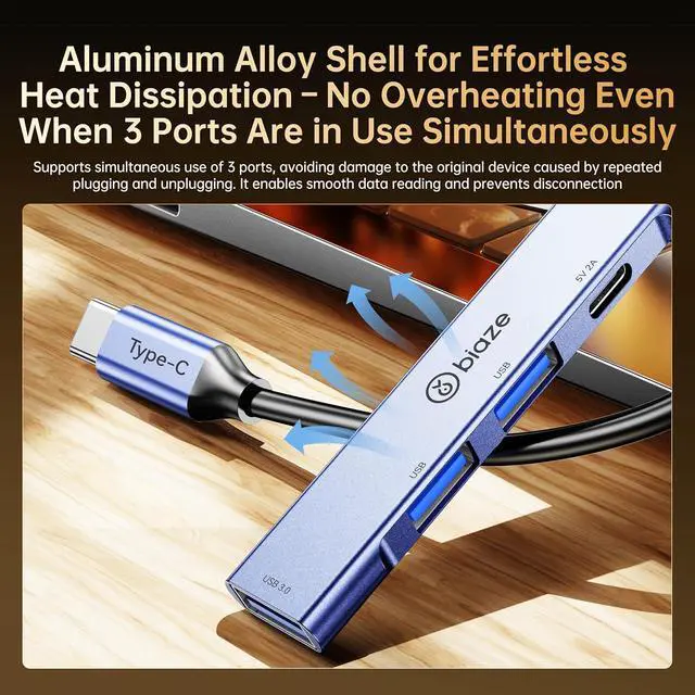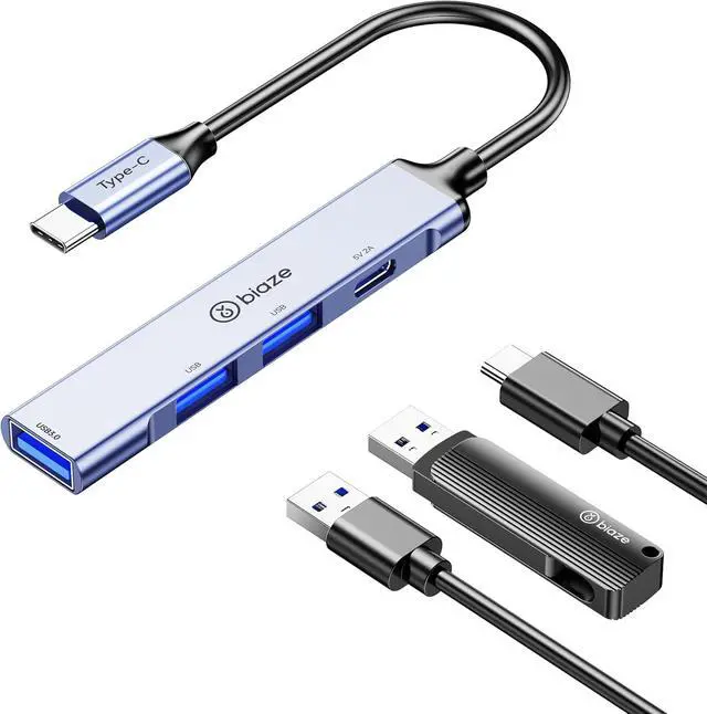 JVFYI Type-C 4-Port Hub with Dedicated 5V/2A Type-C Power Adapter | Stable External Power Supply | High-Speed 4-in-1 Hub for Laptops, Desktops, and Hard Drives with USB 3.0 High-Speed Transfer