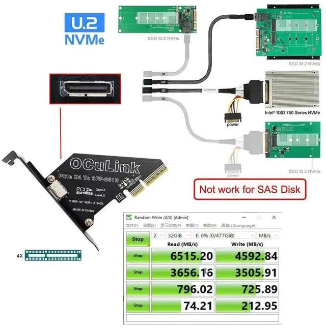 PCI-Express 4.0 PCIE 4x to Oculink SFF-8612 SFF-8611 Host Card for U.2 SSD eGPU External Graphics Card Dock