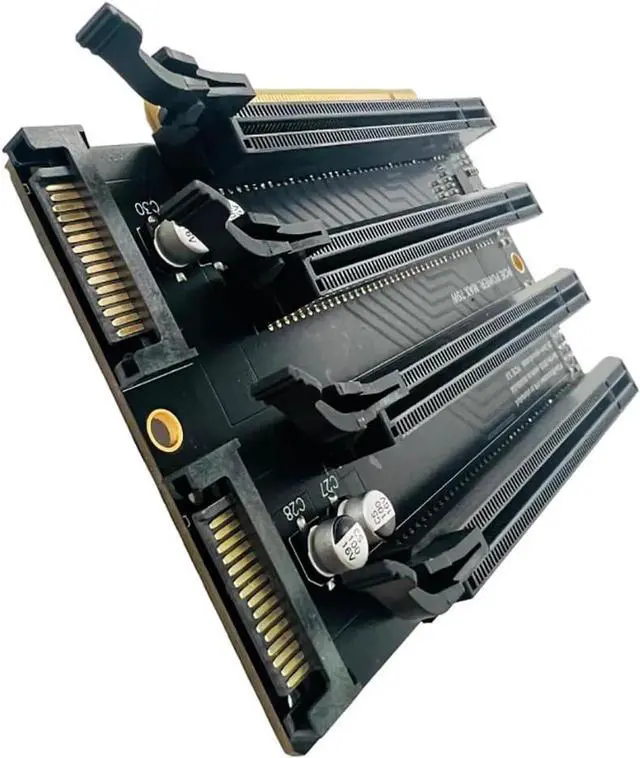 With SATA power supply port, add 4 solid capacitors. With 1 minute 4 clock split IC. with 4 power-on LED indicators.