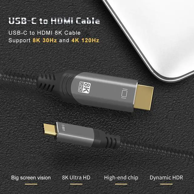 Excellent Performance: 8K USB C to HDMI 2.1 Cable combines the latest HDMI 2.1 standard with the versatility of USB-C. Supports 8K@30Hz, 4K@120Hz, 2K@144Hz high refresh rate and 48Gbps bandwidth. Rejection screendelay and flicker. Dynamic HDR delivers realistic visual effects with rich colors and super-fine details. Upgrade eARC audio-visual feast for surround sound audiobuild the home theater system. Just plug and play, no additional driver/software required.