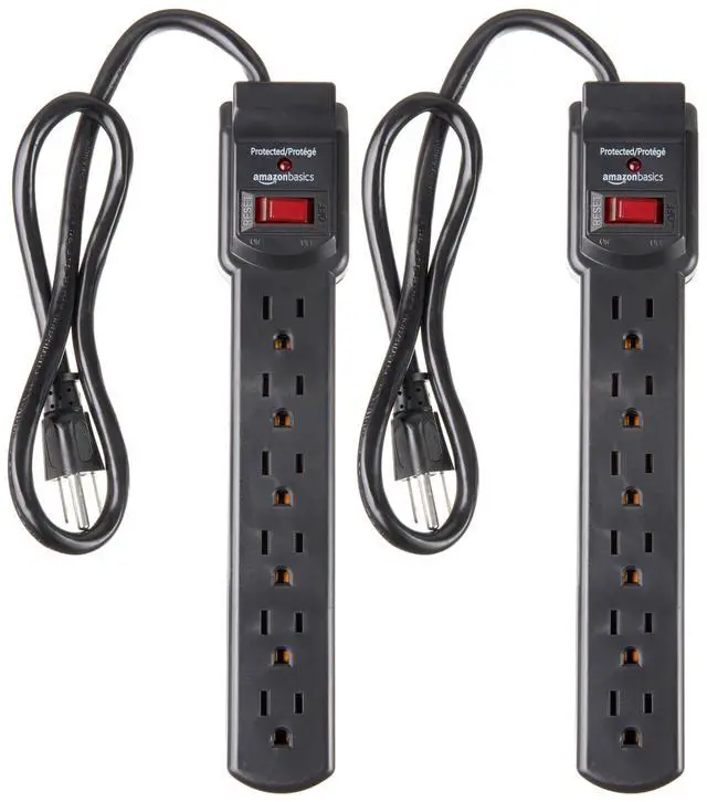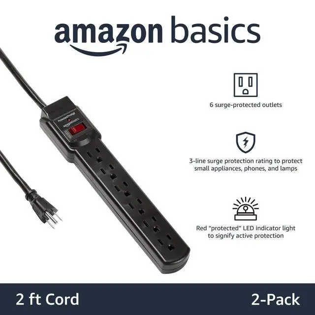 IN THE BOX: Surge protector power strip in Black (2-pack) for protecting small appliances, phones, lamps, and more from potentially damaging power surges