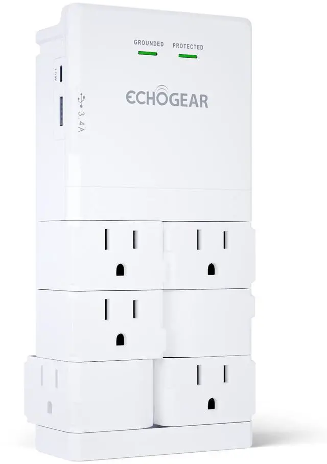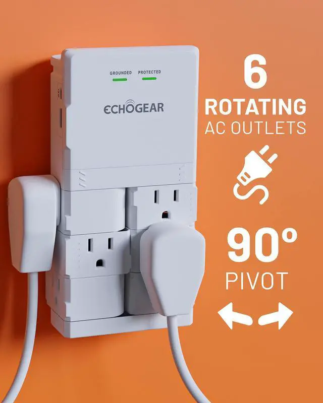Swivel the 6 AC outlets 90º to fit all your plugs, even the unusual ones. Low profile design (only 1-1/4" thick) stays slim against your wall and looks great.