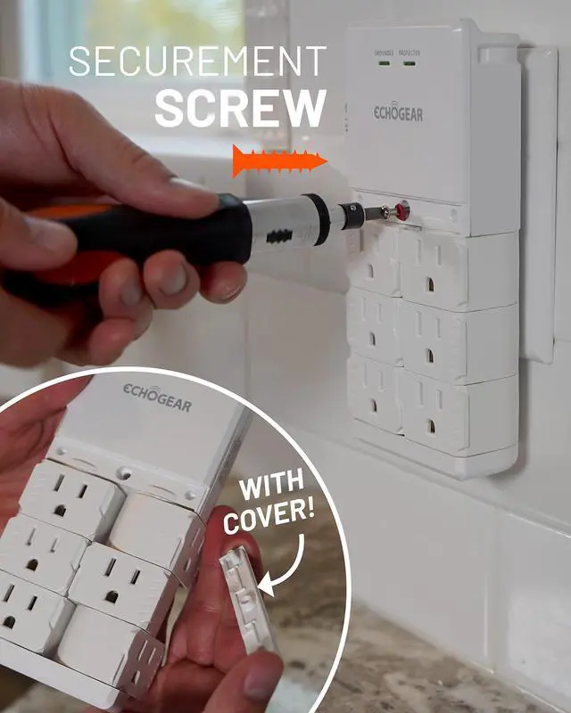 Secure your surge protector to the outlet with the included securement screw. It's hidden behind a nice little trap door to stay out of sight. Securement screw is not compatible with duplex style outlets.