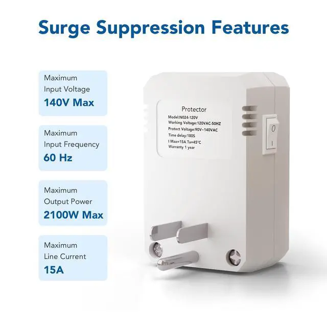 LED Indicators Wall Outlet Surge Protector: This single surge protector conveniently plugs into an outlet, eliminating the need for managing long, bulky cords. The compact design will not interfere with the use of other outlets. Additionally, the surface of the wall surge protector features clearly displayed LED indicators for normal voltage, over voltage, and under voltage, enabling you to easily verify if the surge protector is activated and providing protection.