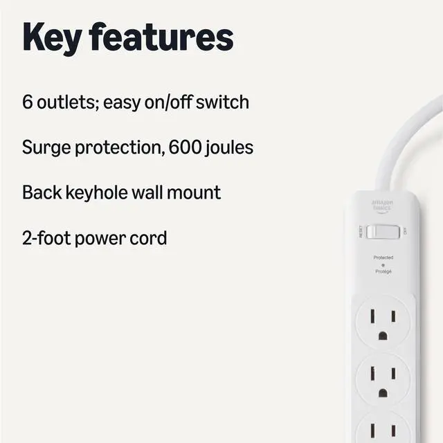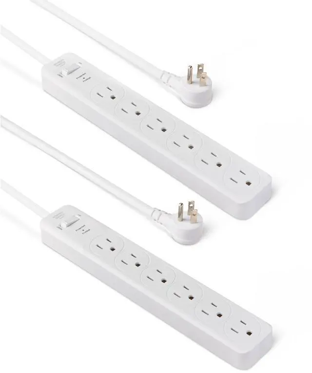 • 2-pack of 6-outlet power strip surge protector delivers reliable electricity and safeguards electronics from surges and outages