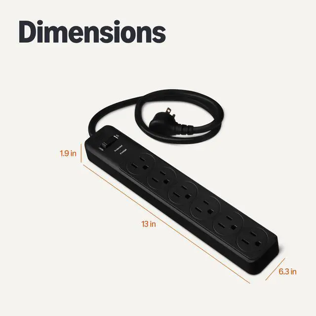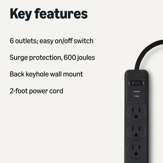 • 2-pack of 6-outlet power strip surge protector delivers reliable electricity and safeguards electronics from surges and outages