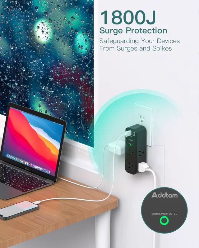 Surge Protector Outlet- This surge protector wall mount features 1800 Joules surge protection with overload protection, short-circuit protection, over current protection, over-voltage protection, and overheating protection. The USB wall charger surge protector is much quicker and more reliable than traditional surge protector circuits. ("SURGE PROTECTED" indicator light on to show your devices are protected)