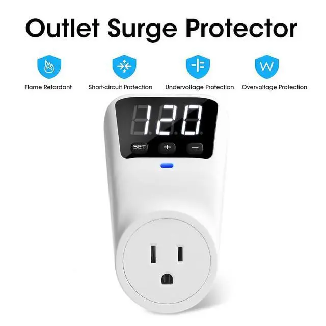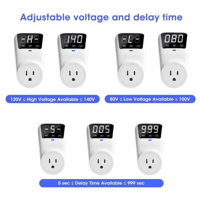 Customizable Protection This smart surge protector offers adjustable voltage thresholds (min/max) and reboot timing. Use intuitive +/- controls to tailor safety for any appliance.