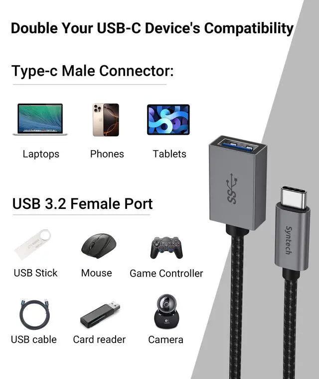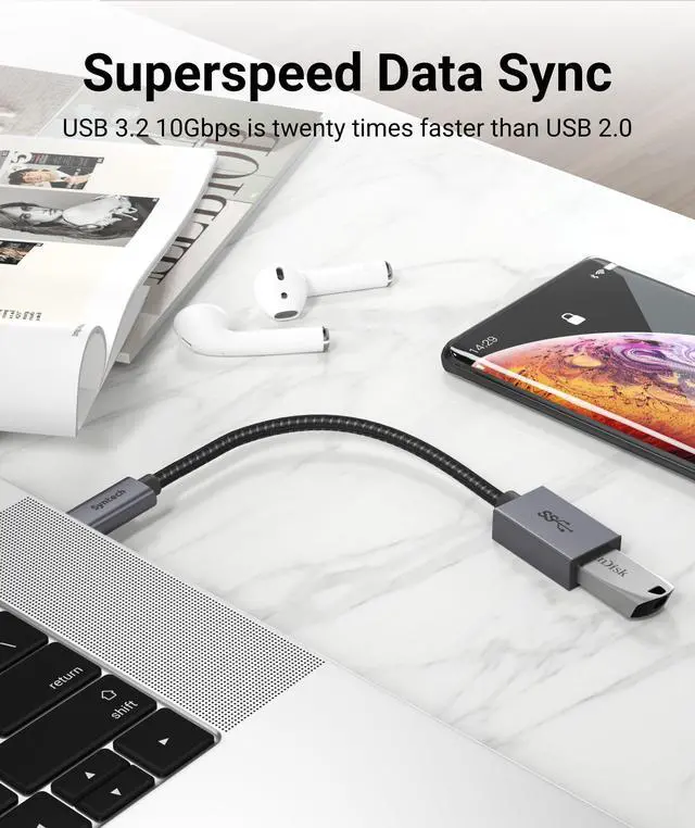 USB 3.2 Gen 2 OTG Transfer Speed: This USB-C to USB-A adapter fully supports the 10Gbps transfer speed of the USB 3.2 Gen 2 standard, significantly boosting efficiency when accessing or transferring large files.
