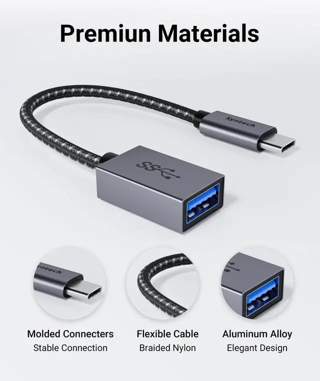 Material: Aluminum alloy USB C to USB connector housings are designed to dissipate heat generated during charging and data transfers, ensuring safety compared to other plastic adapters. The abrasion-resistant nylon braided cable is rugged enough for everyday use and can withstand strong tension forces.