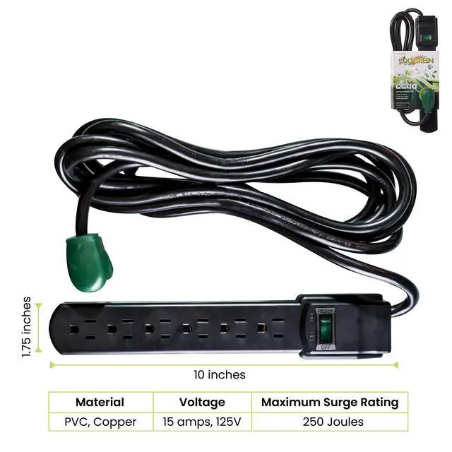 Circuit Breaker: This surge protector comes with a 15 amp, 1875 watt resettable circuit breaker/rocker switch combo, that protects your unit in case of a surge spike.