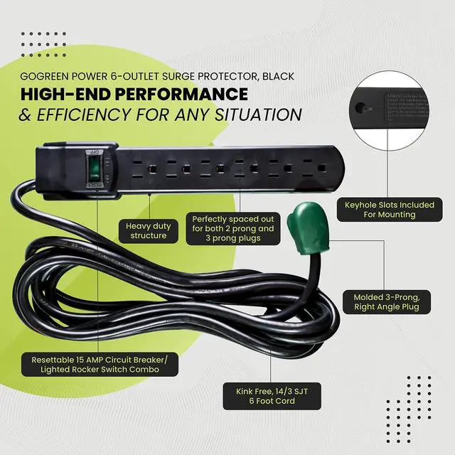 Power Outlet Surge Protector: The 6 Outlet Surge Protector is the solution for situations where you need something a bit more heavy duty to protect your electrical appliances.