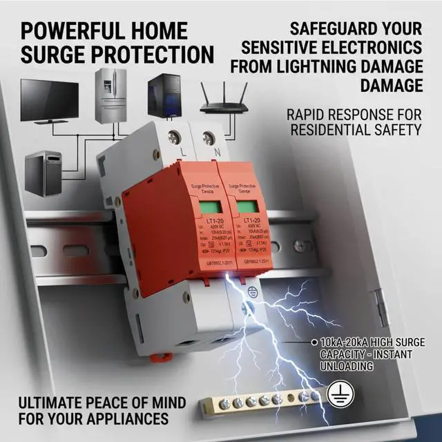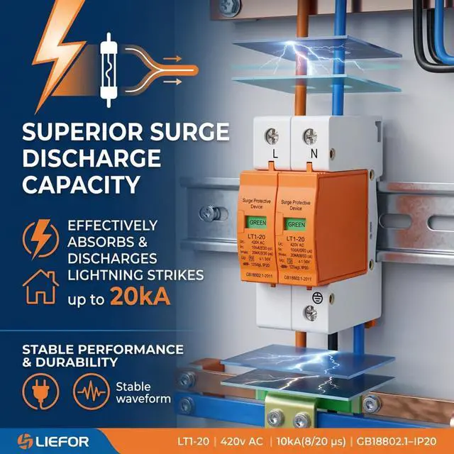 Stable and Reliable Performance: This protective device is crafted for stable operation, with a response time of 25ns. It ensures that even in the event of a strike, your possessions remain protected, thanks to a maximum discharge current of 20kA. Count on its reliability for continuous protection against voltage spikes.