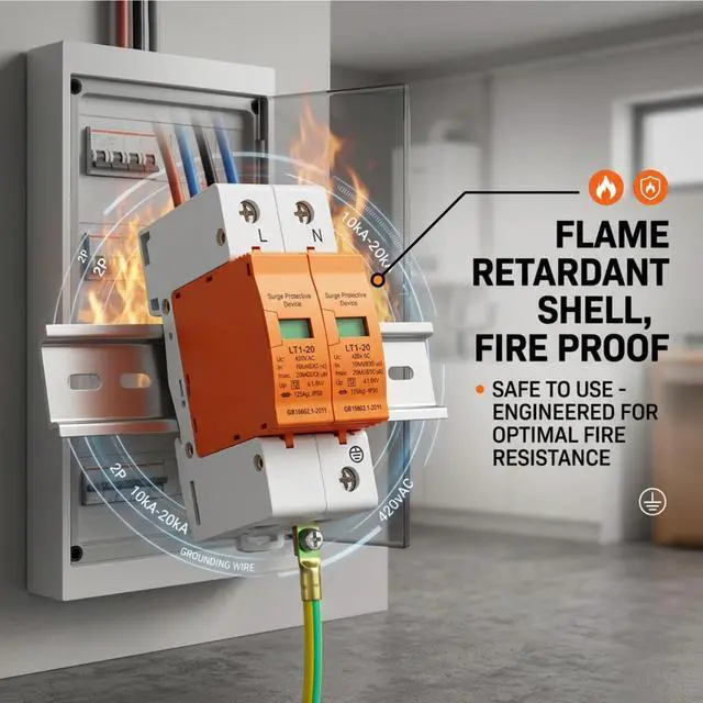 Fireproof and Safe Material: Built with a flame retardant PC shell, this arrester device prioritizes safety with fire-resistant properties. You can have peace of mind knowing that this robust construction not only protects against surges but also minimizes fire risks, ensuring a safer environment for you and your family.