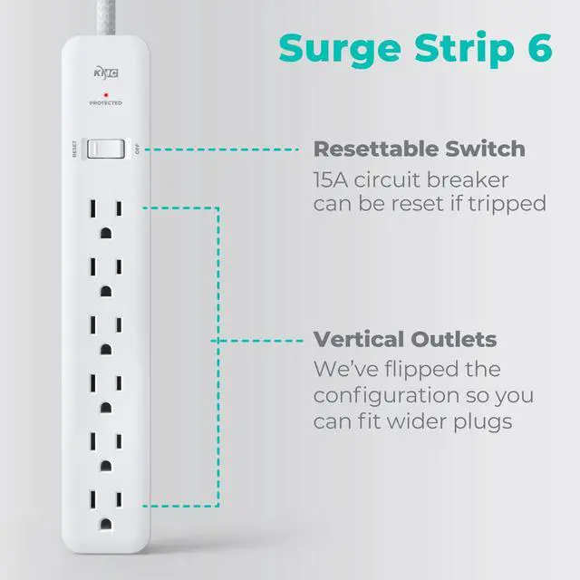 Surge Strip 6, in white, is a 6-outlet surge protector power strip with sleek and modern styling. (2-Pack)