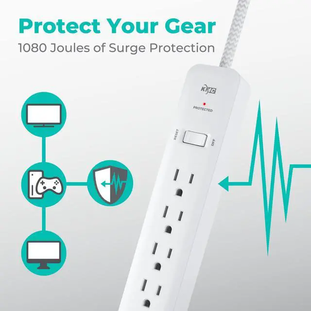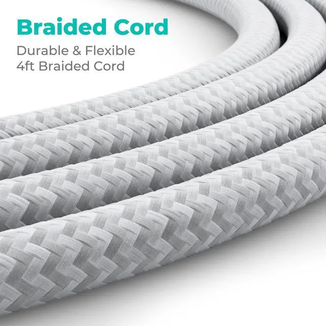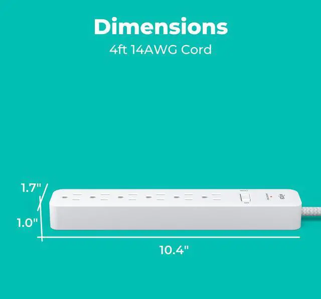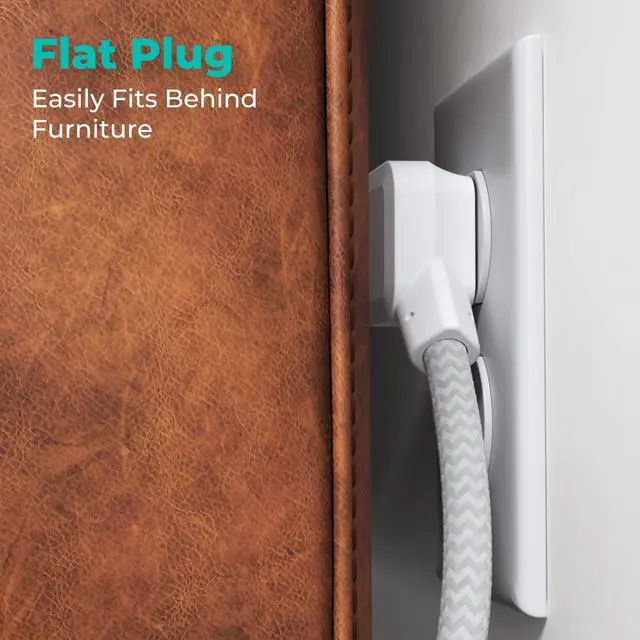 4ft extension cord with multiple outlets and durable braiding, takes your power strip where you need it in style. The low-profile plug allows this surge protector to easily fit behind furniture.
