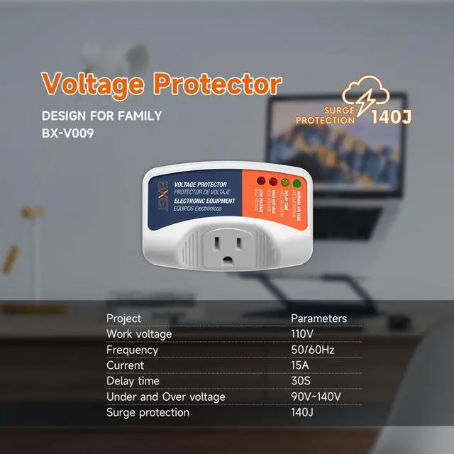 Comprehensive Surge and Lightning Protection: Effectively protects your home appliances from power surges, lightning strikes, voltage spikes, and electrical fluctuations. With a 140J surge protection capacity, it ensures reliable safety for high-power appliances like refrigerators and air conditioners, preventing damage during unexpected electrical surges.