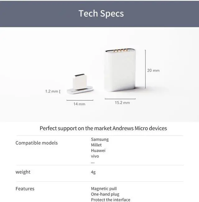 1x Micro USB to Magnetic Charger Adapter(cable NOT included)