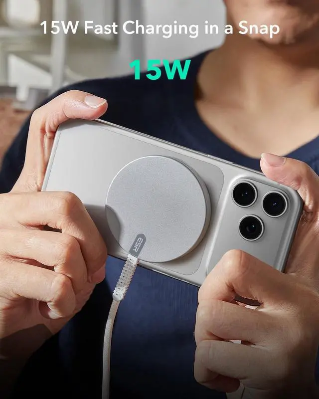 ESR for Magsafe Charger, 15W Wireless Charger, Magsafe Charger for iPhone 17/16/15/14/13/12, AirPods 4/3/Pro/Pro 2,Galaxy S25,Strong Magnetic Charging Pad with Type-C Cable,Sliver