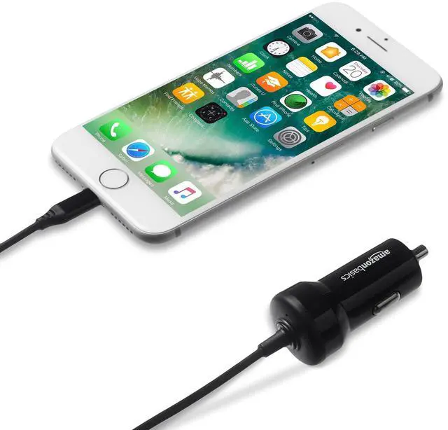 Lightning car charger for charging portable Apple devices when traveling in the car