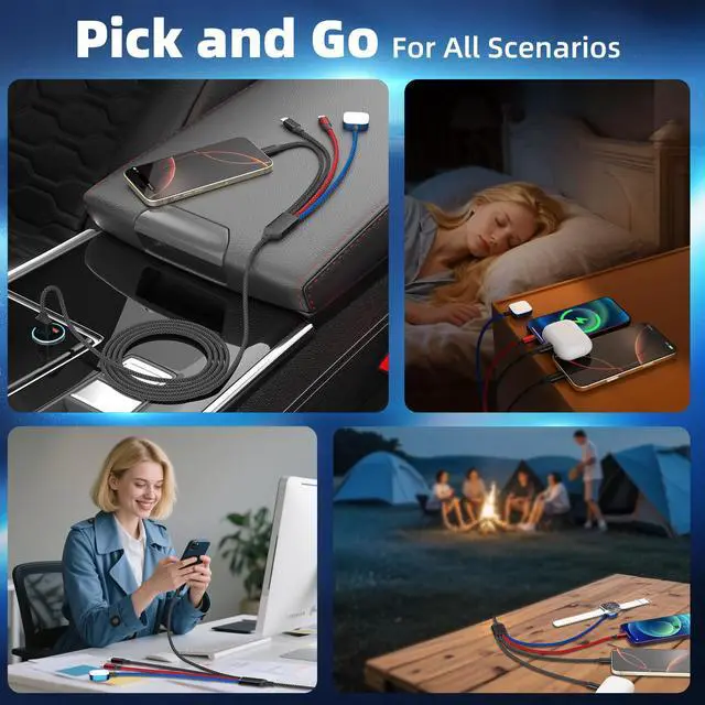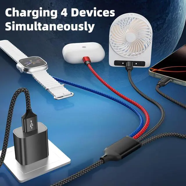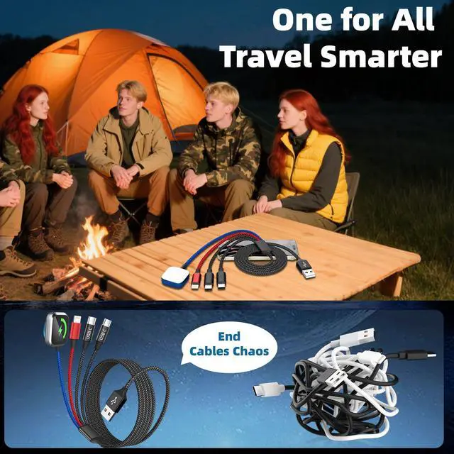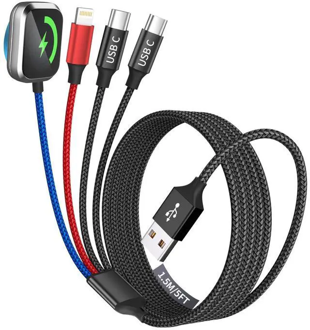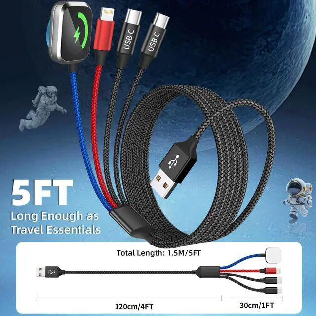 Safe Charging & Last for LongThe charging cable for multiple devices feature Thickened Tinned Copper Wires, enjoying superior conductivity for safer, more stable charging. Built-in intelligent chip recognition, over-current, over-voltage and over-temperature protection, this usb a/c iWatch charger cable charg your watch safely. Plus, tested to withstand over 20,000 bends and plug/unplug cycles, the usb multi charger cable can meet the long-term daily use.