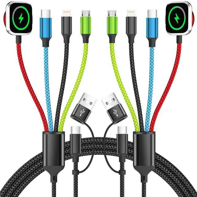 4-in-2 Multi Charging Cable All-in-One Travel Solution Combining USB A and USB C input with Lightning, USB-C, Micro-USB and iWatch charger outputs, this versatile 4-in-2 cable powers multiple watch and Android devices simultaneouslyideal for iPhone 175, iWatch Ultra/SE/112, iPad, and Galaxy S25S21. One cable covers all your charging needs. (iOS connectors support data sync only, 480Mbps)