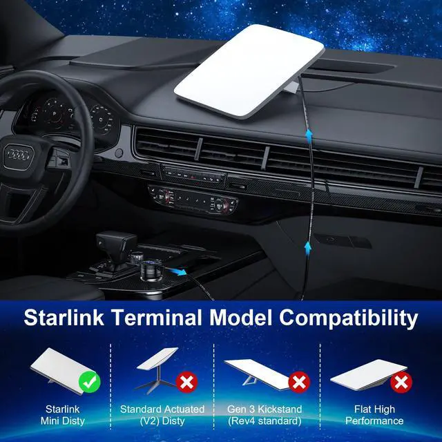 This starlink mini car adapter dc power cable delivers reliable, high-performance power to your starlink nini,while also supporting cigarette & type c charging for devices like phones or laptops, with up to 48W output.
